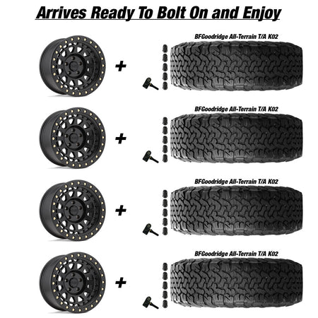 • (4) Mounted and balanced Tires. Your Choice of BFGoodrich All Terrain T/A K02 or RBP Repulsor R/T 37x12.5R17