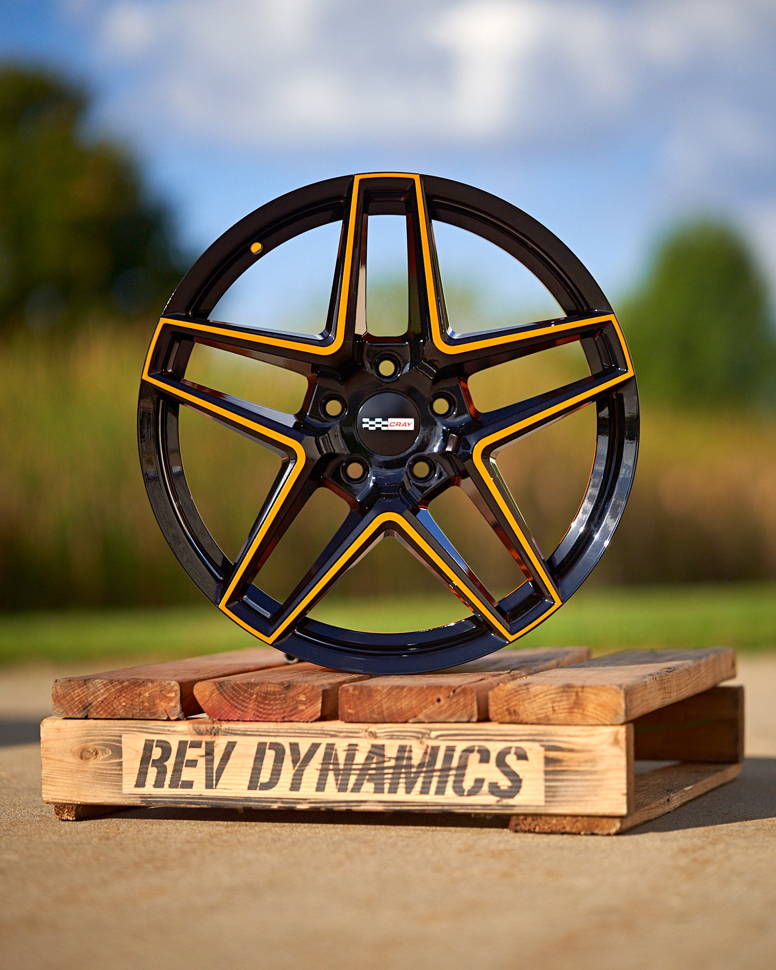 Cray Panthera C8 Corvette 19x9" Front 20x11.5" Rear Wheel and Tire Package - Amplified Orange and Black