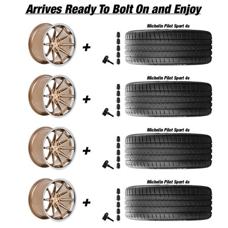 Ferrada CM2 Tesla Model 3 20" Front and Rear Wheel and Tire Package - Brushed Cobre