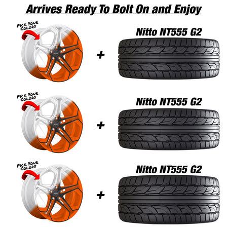 We ensure all of our wheel and tire packages will perfectly fit your Slingshot with the correct diameter, offset, and bolt pattern. Your wheel and tire upgrade will be ready to bolt on and enjoy right out of the box with no rubbing and no abs or traction control errors. Oh, and of coarse the rear tire will be centered.