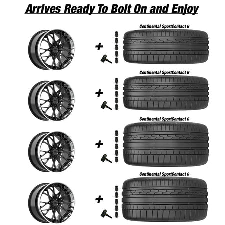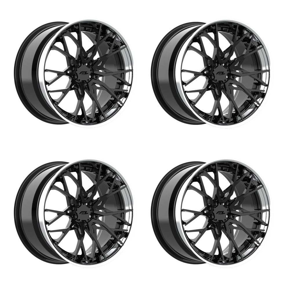 Forgedlite RS20 3pc C8 Corvette 20x9" Front 21x12" Rear Wheel and Tire Package - Gloss Black w/ Chrome Lip