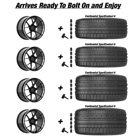 Forgedlite RS5 3pc C8 Corvette 20x9" Front 21x12" Rear Wheel and Tire Package - Gloss Black w/Chrome Lip
