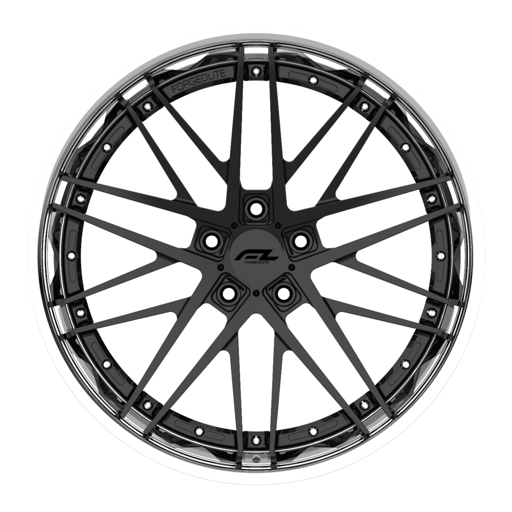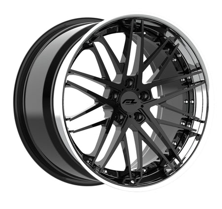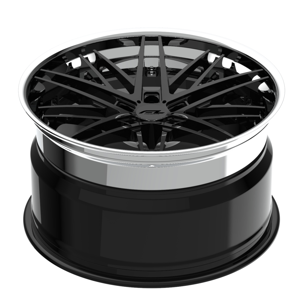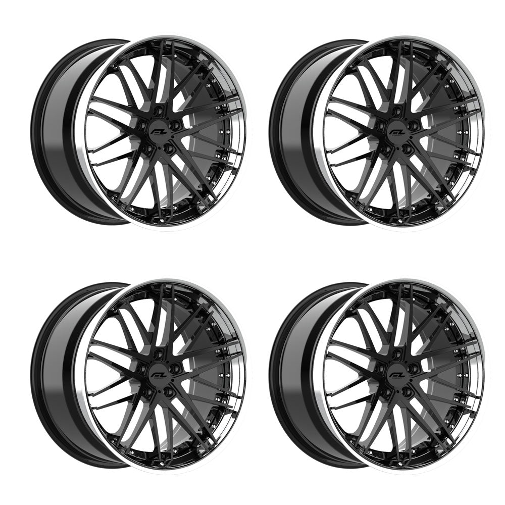 Forgedlite RS7 3pc C8 Corvette 20x9" Front 21x12" Rear Wheel and Tire Package - Gloss Black w/ Chrome Lip